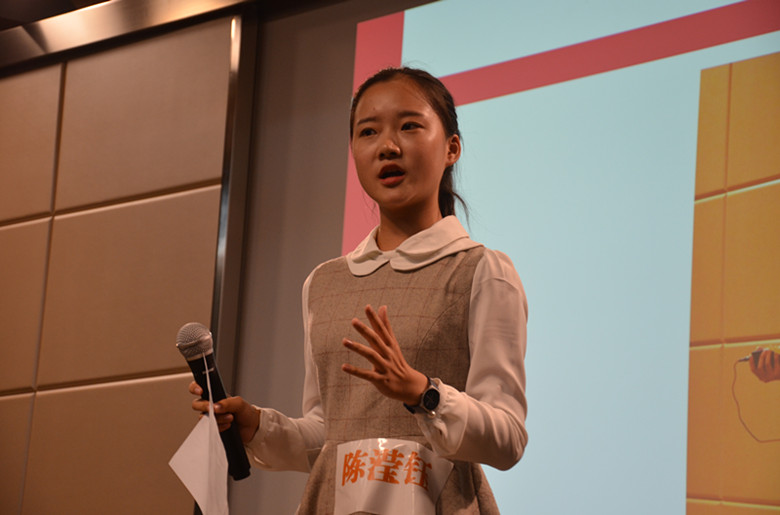 相较于初赛,高一戈老师战队的三名选手都有了极大的进步。她们在舞台上更加轻松自如、娓娓道来,同时在形式上都做了另辟蹊径的创新,不免让人眼前一亮。胡军霞结合图片说故事;于雯旭通过好书推荐展开论述,让人茅塞顿开;李颖迪用《南方周末》记者的故事循循善诱,巧妙利用结尾处的音乐使人心振奋。尽管因为紧张而忘词,但被评委老师一致赞为”台风稳,范儿更足”,顺利夺得本组最强的称号。