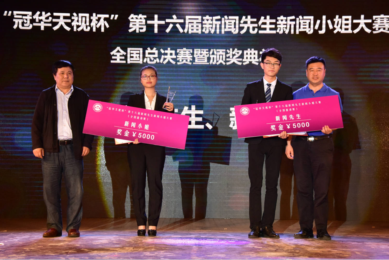 5月29日下午18:30,在tyc33455cc太阳成集团梅园小操场,“冠华天视杯”第16届新闻先生新闻小姐大赛全国总决赛暨颁奖典礼如期举行。从千余名竞争者中脱颖而出的十六位选手们在决赛的舞台上碰撞智慧,描绘新闻理想、展现新闻素养。最终,来自tyc33455cc太阳成集团的张宁与来自华中科技大学的陈艺获得全国总决赛的一等奖,成为本届新新大赛的“新闻先生”和“新闻小姐”。