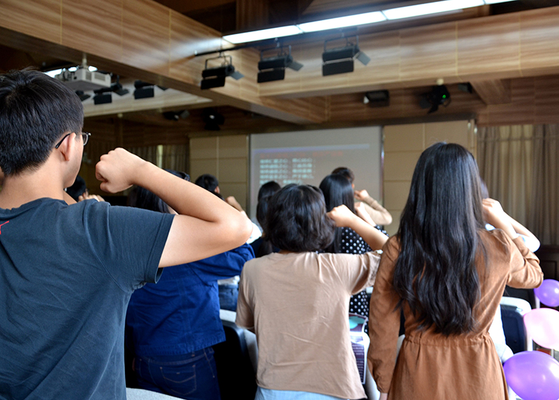 看过《火锅英雄》没有?我就那个18中出来的重庆人。”带着重庆人的直率,16级辅导员刘思维老师站在台下说起了自己的18岁。“那时成年的生日也不过是和妈妈在食堂一起吃了顿饭。”现在刚当妈妈不久的她,曾经也同样是活泼俏皮才华横溢的姑娘,一路走来,她以过来人的经验告诉大家,“希望你们在用于承担责任的前提下,能够自由地度过你们的大学四年。”