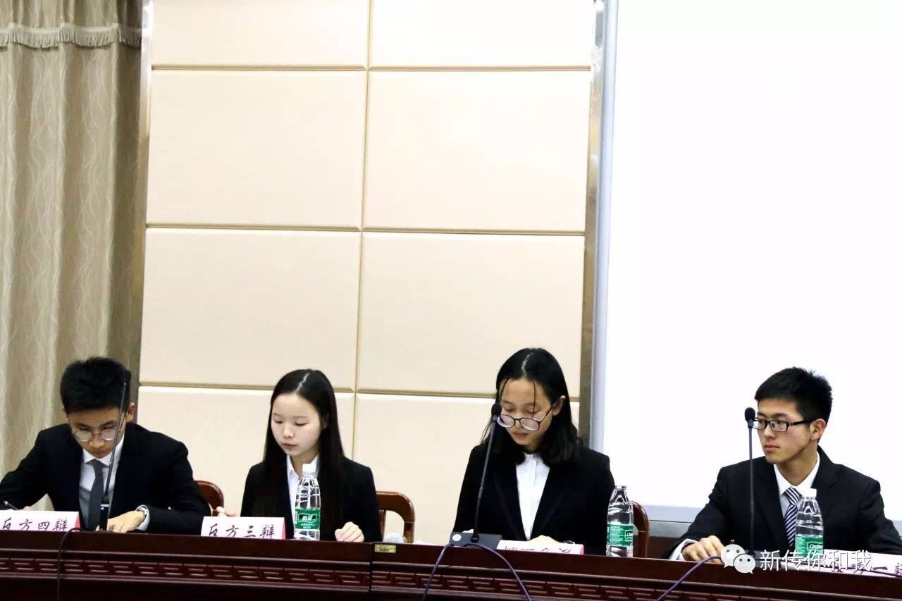 比赛分为立论,驳论,攻接盘,小结,自由辩论和四辩总结六个环节。在双方辩手就行了简短利落的自我介绍后,比赛正式开始。