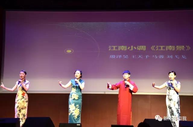 旗袍美女,长袍先生,瞬间把现场带入江南的袅袅水烟之中,由殷泽昊、王天予、马蓉、刘弋戈四人演唱的江南小调《江南景》,极具南方温婉之美,吴侬软语咿咿呀呀,似水柔情。“从前的车马都很慢,一辈子只够爱一个人。”由16级播音班情歌小王子姜成浩演唱的《从前慢》深情款款,悦耳动听。