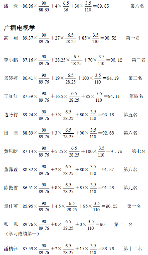根据公司本科生院有关文件精神,经公司推免工作小组审核后各专业排名情况通报如下: