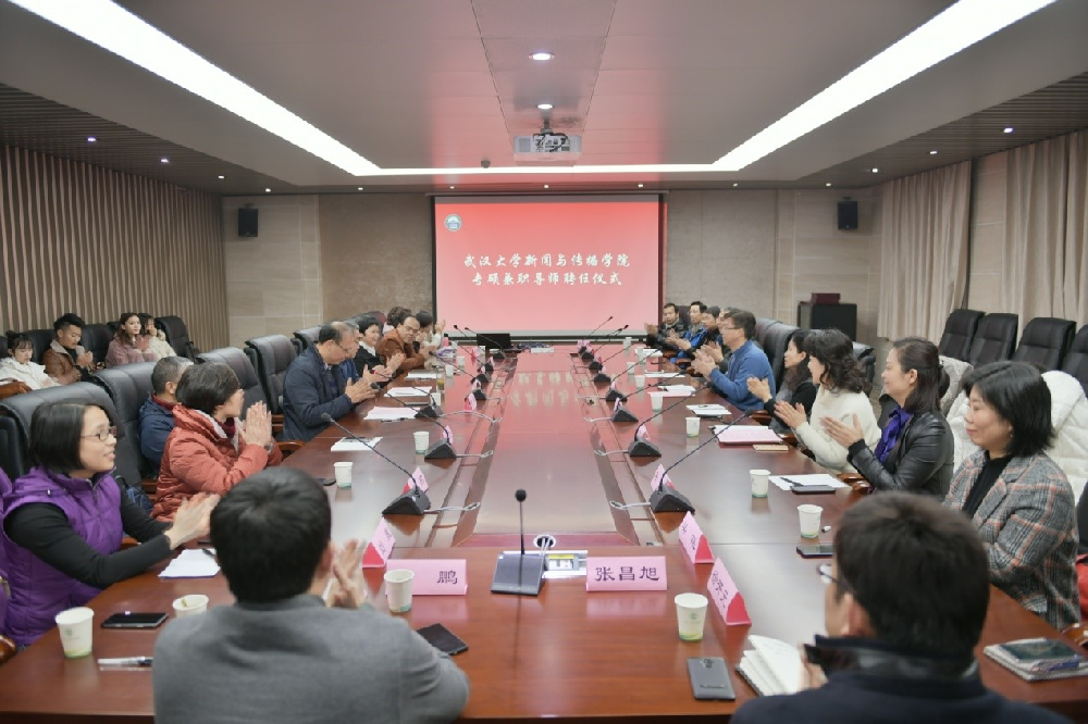 2018年12月26日下午,229会议室暖意融融。专业硕士研究生校外兼职导师聘任仪式在这里隆重举行。湖北日报传媒集团、湖北广播电视台的人事部领导和18位兼职导师,公司领导、各系负责人以及专业硕士研究生代表出席了聘任仪式。仪式由tyc33455cc太阳成集团副经理程明教授主持。