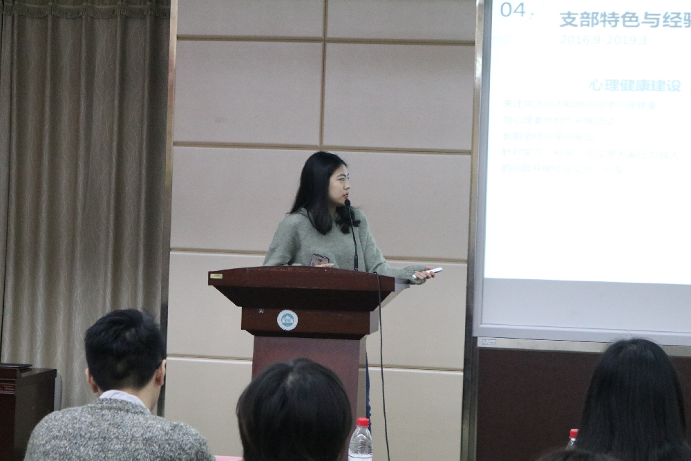 各党支部支书主要就2018年度支部发展情况、党建工作开展情况、工作成果与特色项目等进行述职报告,同时反思不足,提出改进意见。如2017级、2018级博士党支部以日常学习促党建,通过博士宣讲团,结合专业特色,围绕十九大精神作系列宣讲活动;2016级党支部开展“脱贫攻坚”、“全国教育大会”等主题学习活动,反思党员理论学习系统性等问题;2017级党支部组织参加党员知识竞赛,提高各党员的政治意识和分析能力;2018级党支部积极开展党建活动,创“鲲鹏习语”活力创新工程,对2019年“学习强国”与党建工作作出规划等。