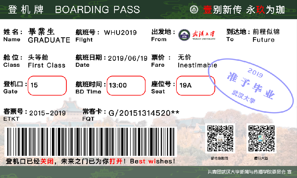 大家把四年共同的回忆都留在了这片土地上,让我们互道一声:毕业快乐!永是珞珈一少年!