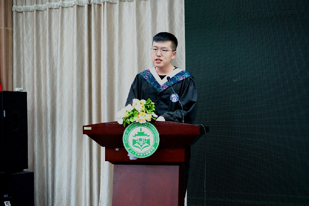 最后是毕业生代表、2015级新闻学专业本科生李龙腾发言。他以“2019年,22岁,我们的处境”为主题。从自己对专业学习的不断思考出发,通过对鲁迅先生所说的“较真”这个词的剖析,说明了“真”对于当代新闻学子的重要性,励志成为坚持“较真儿”、敢于表达的新时代青年,做有思想的新闻人和负责任的传媒人。