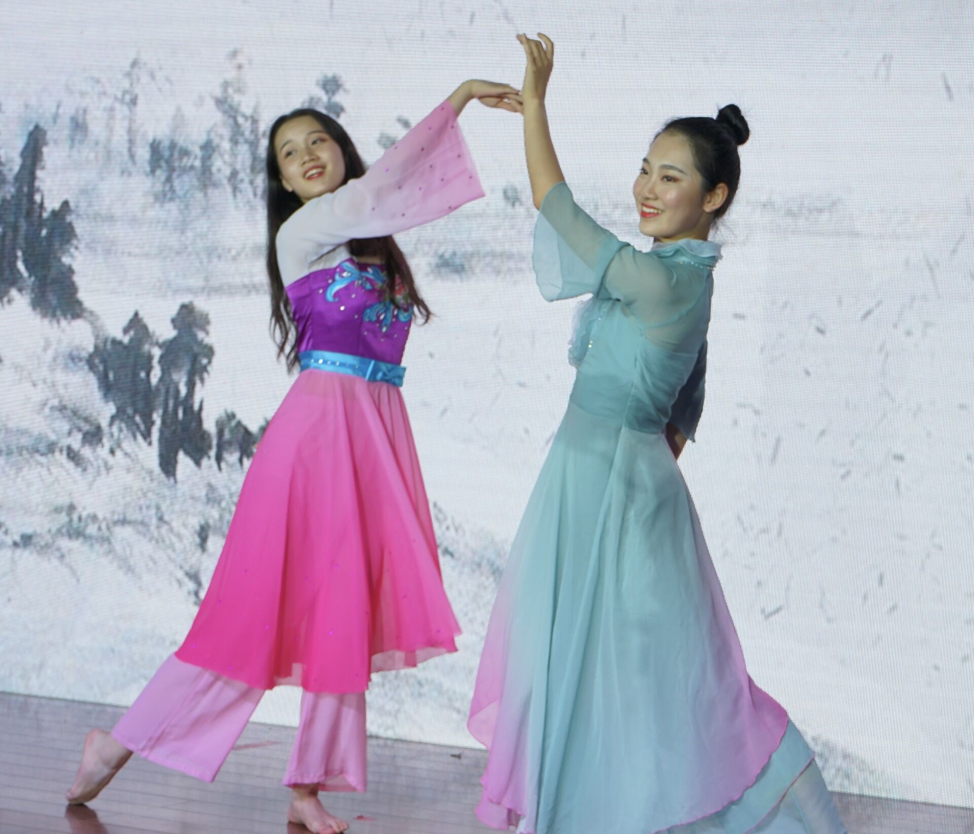 一舞《绒花》,舞动荣华。台上小姐姐的舞姿似盛开的鲜花,台下同学们亦是笑靥如花。