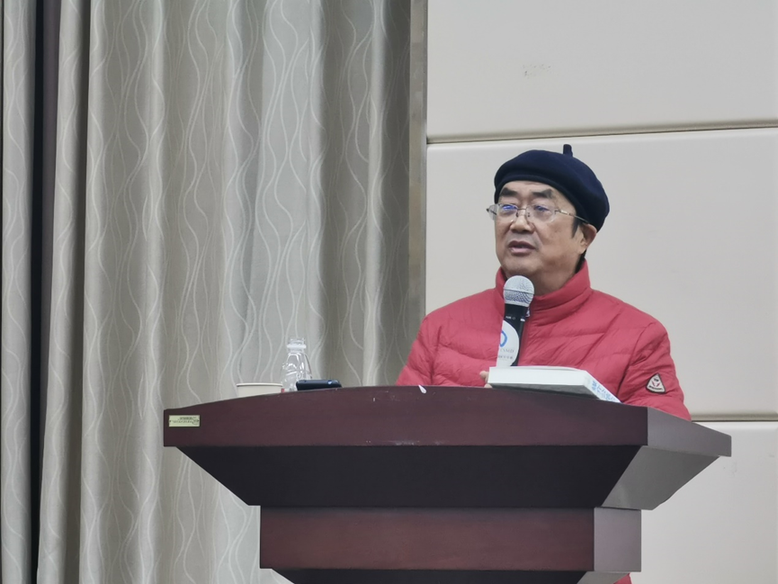 (图为江作苏教授阐释讲座主题)