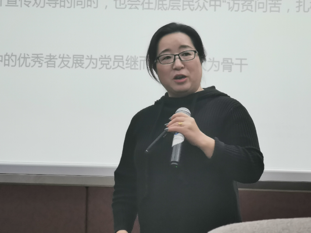 接下来,刘老师着重介绍了“坚持以人民为中心”的工作导向。她特别展示了“以人民为中心”“为人民服务”“群众路线”“以人为本”和“人民性”等重要概念的历史意涵和现实指向。她从习近平总书记历年新年贺词中提及“人民”的频次、党的新闻舆论工作会议和全国宣传思想工作会议的讲话出发,解释了“坚持以人民为中心”要做到党性和人民性的统一。
