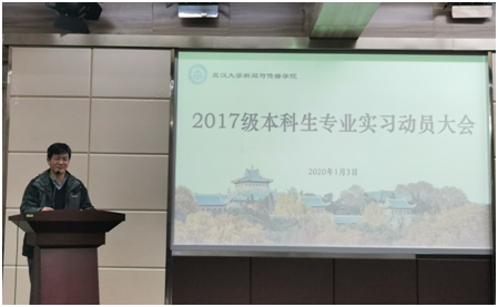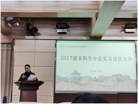 会议开始,周茂君老师围绕“过好专业实习六大关”作实习动员讲话。他提到实习的第一关,即是从入门到全面接纳和认可的过程;第二关是纪律关。周老师谈到同学们既要遵守公司的校纪校规,又要遵守实习单位的劳动纪律,严格遵守保密要求;第三关和第四关是金钱关和荣誉关。他专门就此列举多个实习案例,向同学们强调要坚守职业道德;第五关则是感情关。他认为同学们要处理好与同学、指导老师之间的工作关系和感情关系;谈到第六关,周老师认为同学们必须守好“安全关”,要注意人身财产安全,将安全意识放在首位。随后,周老师还向同学们解读了公司关于专业实习的相关政策及规定。