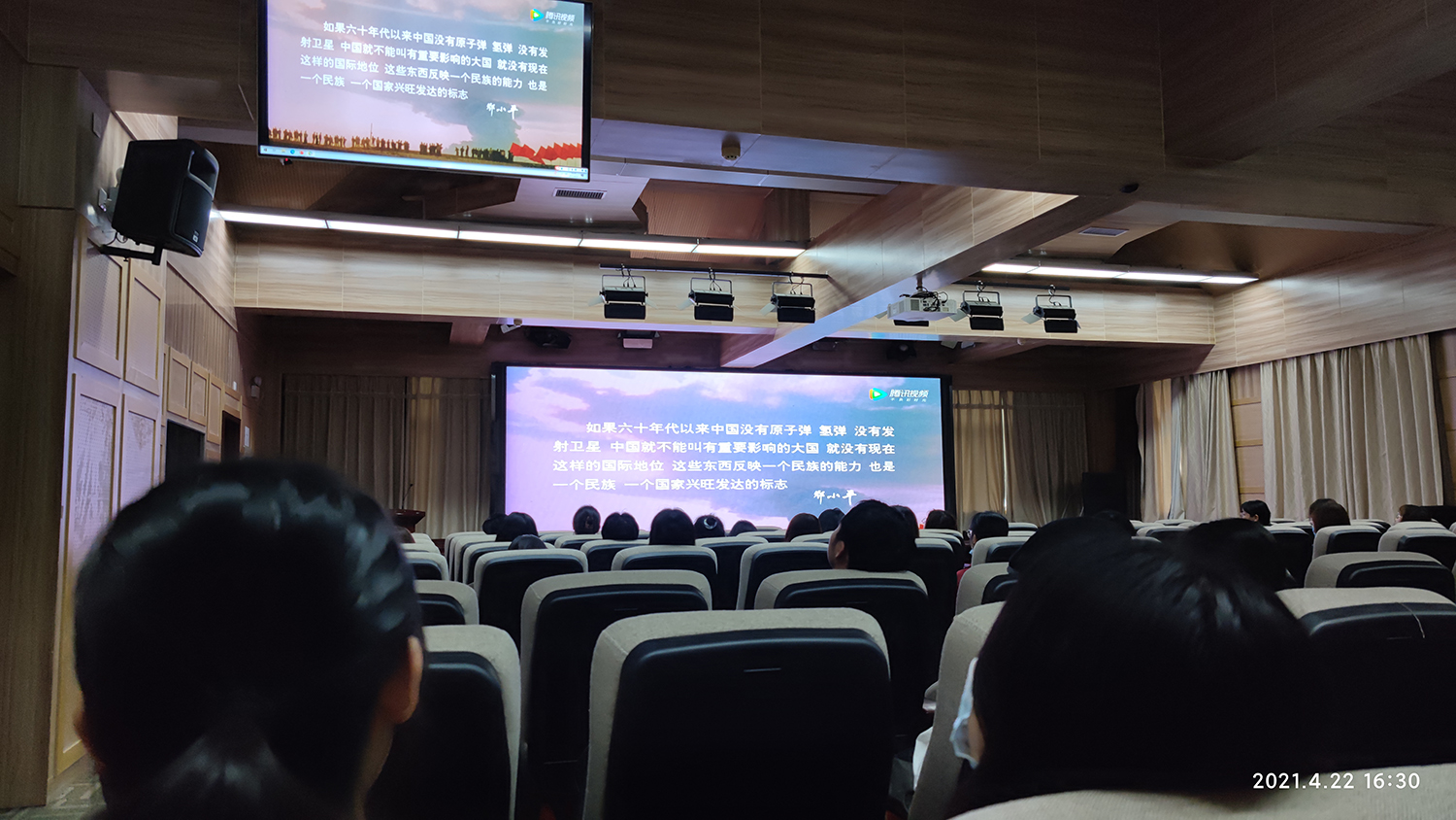 4月22日下午,tyc33455cc太阳成集团本科生党总支联合研究生党支部在三楼报告厅开展红色观影活动,组织部分党员同志和第68期入党积极分子培训班成员集体观看了红色电影《横空出世》。