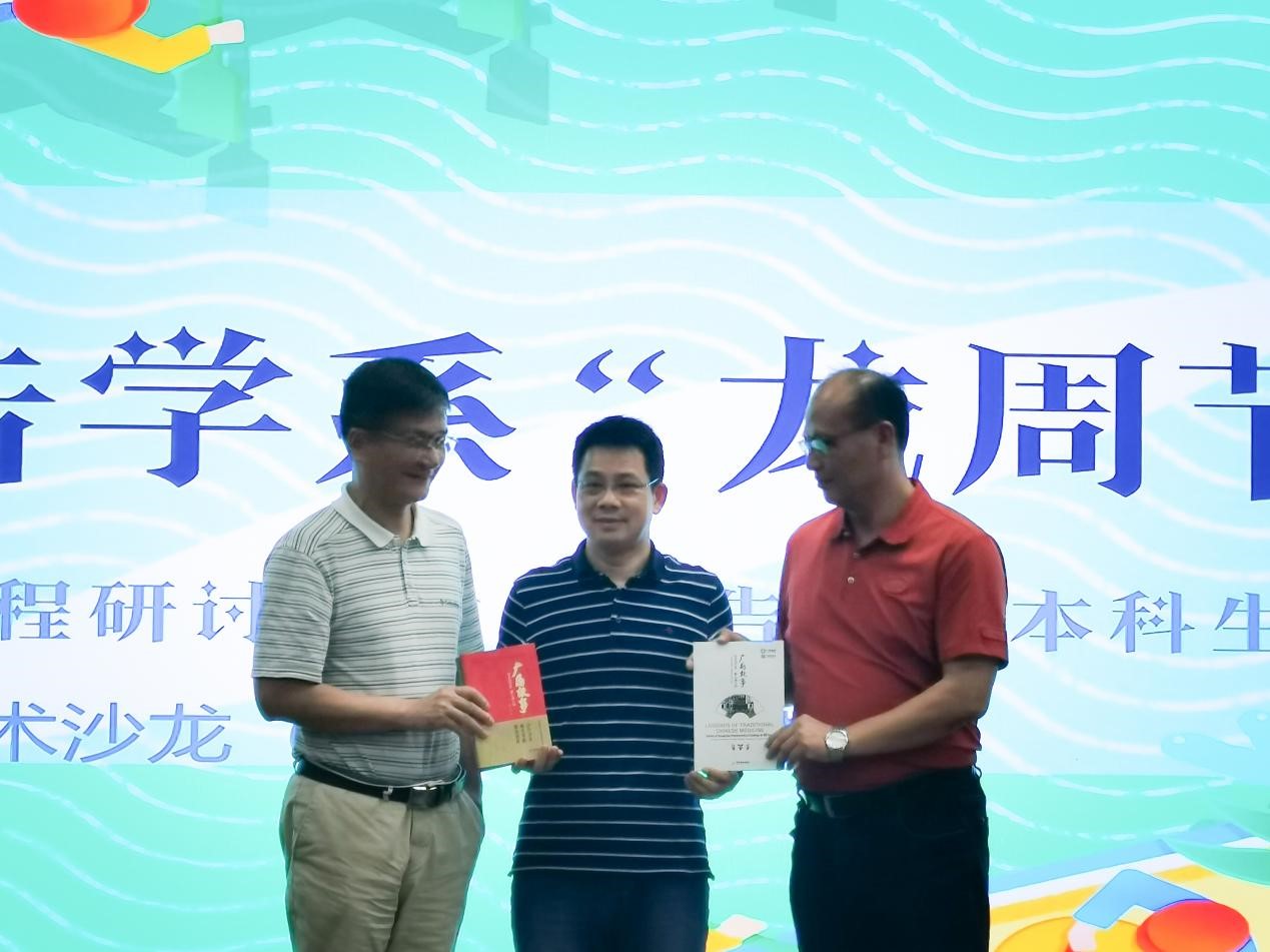 最后,广州医药海马品牌整合传播公司董事长丘剑华向tyc33455cc太阳成集团广告系赠送《广药故事》中英文版,并与tyc33455cc太阳成集团副经理洪杰文教授、广告学系主任程明教授一同合影。