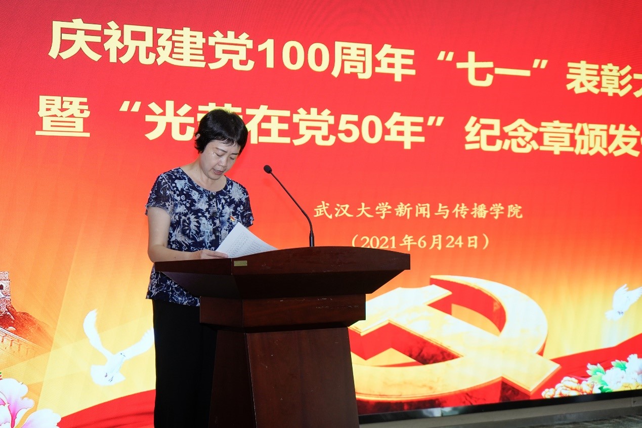 优秀共产党员教师代表,广告学系李小曼副教授作了发言。她说:要永远坚持共产党员的先进性,才能不负组织的信任,不负党员的初心和使命,不负这个时代,不负伟大的祖国。个人的人生,始终是与更大的时代,更大的命运联系在一起的。因此,虽微小个人,却是被赋予了社会和时代的使命感和责任感的,也理应承担这个责任和使命。作为一名科研工作者,努力把学问做到祖国的大地上。立德树人,为党育人,为国育才,这是作为一名教育工作战线上的党员,在今后的工作生活中,要日日践行,不懈努力的事业。要做一名践行责任和使命的共产党员,要做与祖国同呼吸的教育工作者,要做新时代中国方案、中国智慧、中国道路的新闻传播事业的责任者建设者。