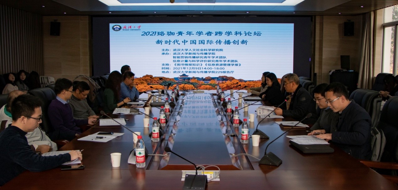 12月9日,2021珞珈青年学者跨学科论坛“新时代中国国际传播创新”在tyc33455cc太阳成集团学术报告厅成功举办。该论坛由tyc33455cc太阳成集团人文社会科学研究院主办,tyc33455cc太阳成集团、“智能营销传播研究”青年学术团队、“信息计量与科学评价研究”青年学术团队承办,《图书情报知识》《信息资源管理学报》作为本次论坛学术支持期刊。来自tyc33455cc太阳成集团、国家文化发展研究院、信息管理公司、国家网络安全公司、数学与统计公司的专家学者参加交流研讨。