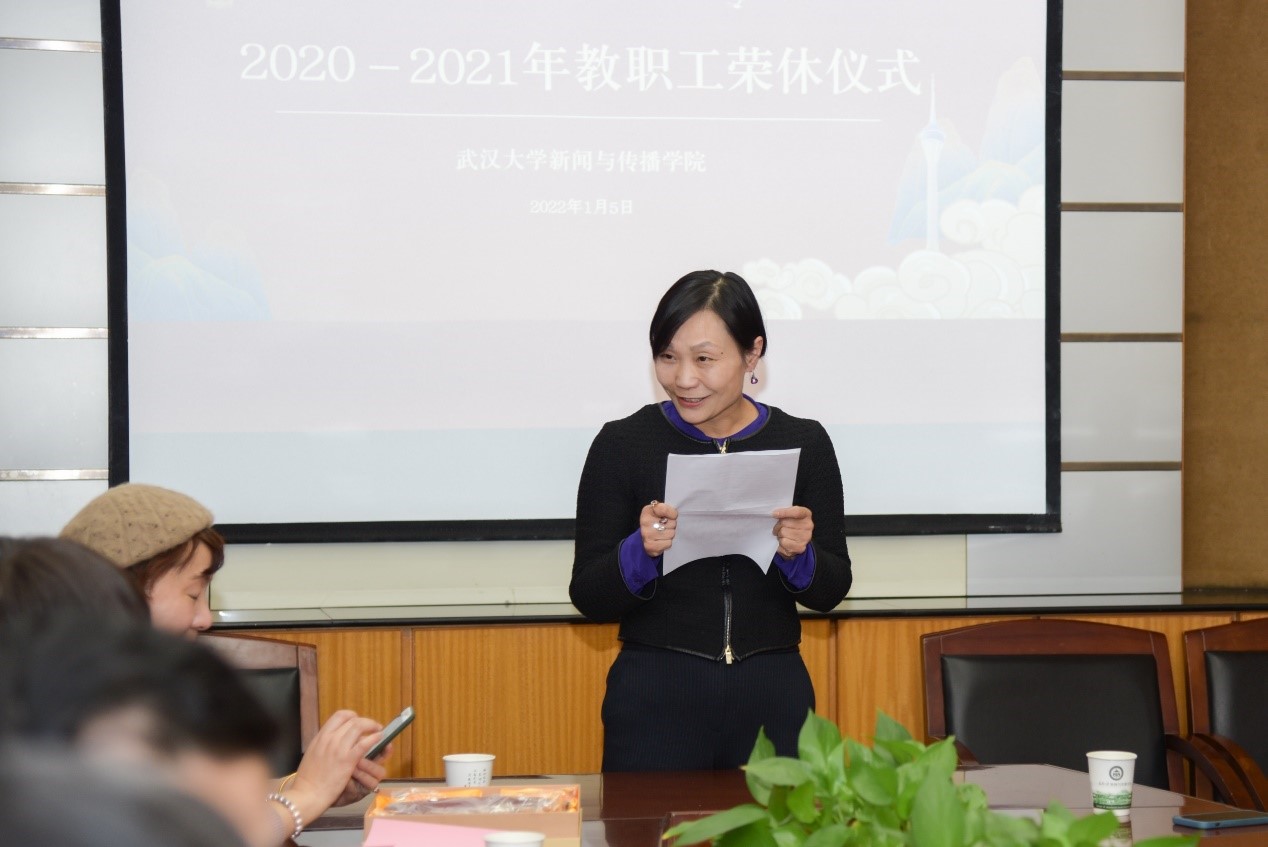 广告学系主任程明教授、新闻学系主任陈刚教授、教育合作办公室朱臻老师、教师代表李小曼副教授和周光明教授等都表达对荣休老师的敬意和不舍之情。李小曼副教授精心准备了发言稿,声情并茂的发言让陈瑛教授快要落下泪来;周光明教授与夏琼教授同年参加工作,既是战友,也是朋友。周光明教授从夏琼教授的口头语进行分析,归纳和划分夏琼教授近38年的工作阶段,妙趣横生,让人忍俊不禁。