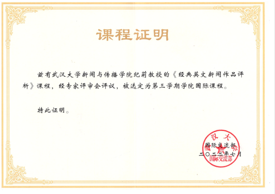课程的开设也得到了tyc33455cc太阳成集团国际交流部的认可,被选为tyc33455cc太阳成集团国际交流部的第三学期国际课程,得到了国际交流部的资助,可以进行更加丰富多元的课程实践。为了进一步增加交流,理解世界各地的传播格局,纪莉教授特地请了来自发达国家和发展中国家的专家学者讲解当地的新闻实践,让同学们对过往阅读的英语新闻有更深的理解。