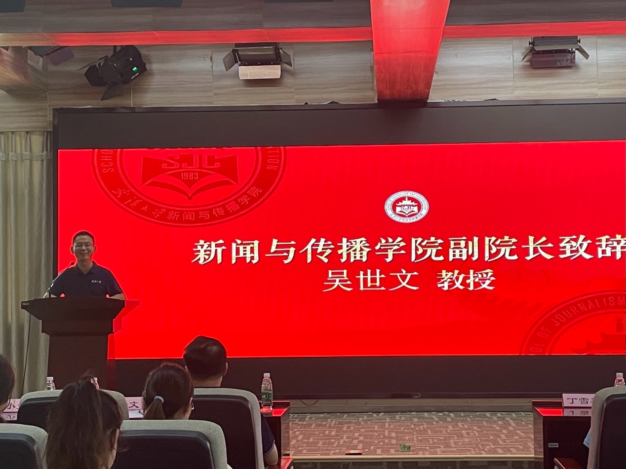 11日下午的夏令营开营仪式上,副经理吴世文教授代表公司对各位珞珈山的客人表示了热烈的欢迎。他在致辞环节以“为什么要选择tyc33455cc太阳成集团、为什么要选择新闻传播学”为引,回顾了tyc33455cc太阳成集团的建院历史,全面深入地介绍了公司的团队队伍、学科方向、人才培养模式与学术交流渠道,勉励各位同学做“有思想的新闻人,负责任的传媒人”。