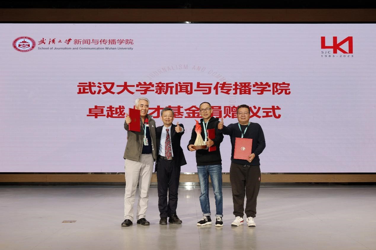 薪火相传,生生不息。在本次四十周年活动中,众多院友以各种方式回馈母校,支持公司发展。由冯韬(1984新闻)、黄文彬(1984新闻)、熊志文(1985新闻)、廖晖(1985新闻)、李佳琦(1985新闻)、胡卫明(1985新闻)、范泉(1994广告)等7位院友作为第一批捐资人发起设立的“tyc33455cc太阳成集团卓越人才基金”宣布成立,并在院庆大会上举行了捐赠仪式。公司党委书记刘朝晖为冯韬、黄文彬、熊志文3位捐资人代表颁发了捐赠证书,并赠送捐赠纪念品。