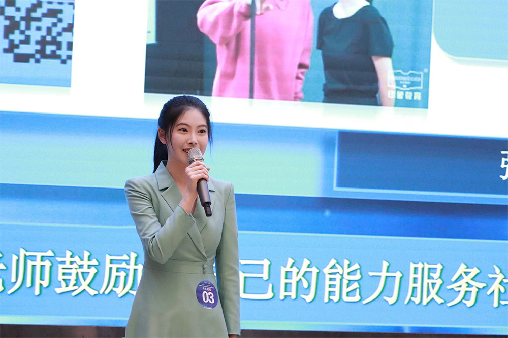 在成长赛道决赛当中,陈嘉雯同学以“破而后立,晓喻新声”为主题,从梦想源起、环境分析、职业目标、职业规划、已有成果几个方面展开,详细介绍了自己想要在媒体融合时代成为向世界传播中华文化的主持人这一梦想,鼓励自己不忘初心、坚守匠心、永远用心,助力中华文化在世界舞台闪耀。