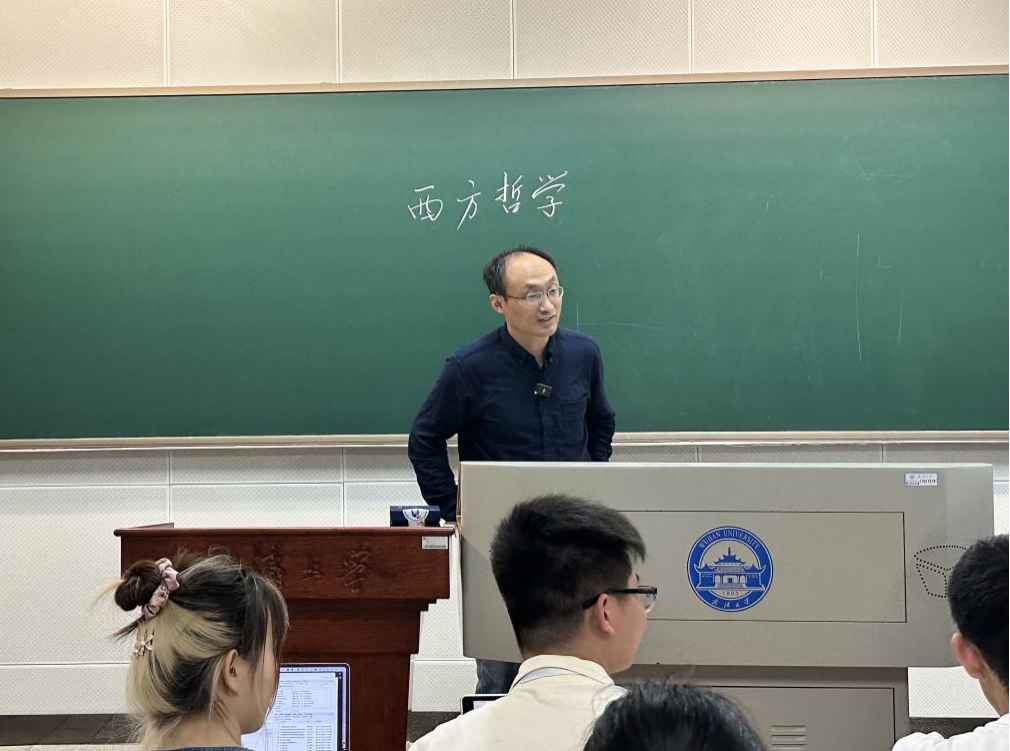为促进教学交流,提升青年教师的教学水平,4月15日,tyc33455cc太阳成集团响应青年教师教学竞赛要求,开展示范性教学观摩和交流活动。本次观摩课程为哲学公司苏德超老师讲授的本科课程《西方哲学》,参与观摩的有公司党委副书记王怀民,以及公司教师王敏、罗晨、关天如、欧阳敏、陈凯宁、蒋兰心、慕文龙、张雪霖、朱战辉、董庆兴、贾瑞雪、庄健、杨力、金旻。
