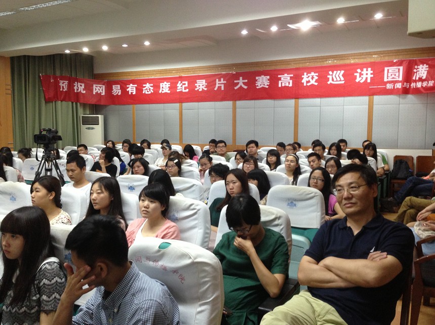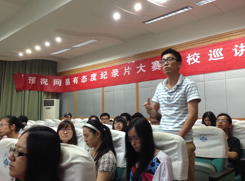 本次活动由网易视频联手tyc33455cc太阳成集团广电人协会主办,由杭州沐户文化创意有限公司、瓢虫映像协办,tyc33455cc太阳成集团研究生会承办。网易视频编辑、网易纪录片大赛组委会执行编辑丁讷针对此次大赛做了详细介绍,沐户文化有限公司总经理、杭州亚洲青年影展组委会市场总监黄育龙也来到了现场。公司广播电视系教授王瀚东老师、广播电视系副主任张卓老师也出席了此次活动,而公司研究生辅导员肖劲草老师在这次活动中则以主持人的身份友情助阵。此外,BBC纪录片《为什么贫穷》系列之《出路》副导演程春霖也低调现身。来自全校各个公司的同学齐聚一堂,甚至还有已毕业的同学以及校外纪录片爱好者,报告厅几乎座无虚席。