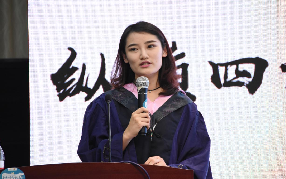 接下来两位毕业生代表依次上台。2017届硕士毕业生孔钰钦发言,总结在校园所学知识,阐述研究生期间的美好回忆,深切表达对公司领导,老师的感激和同学的不舍之情。